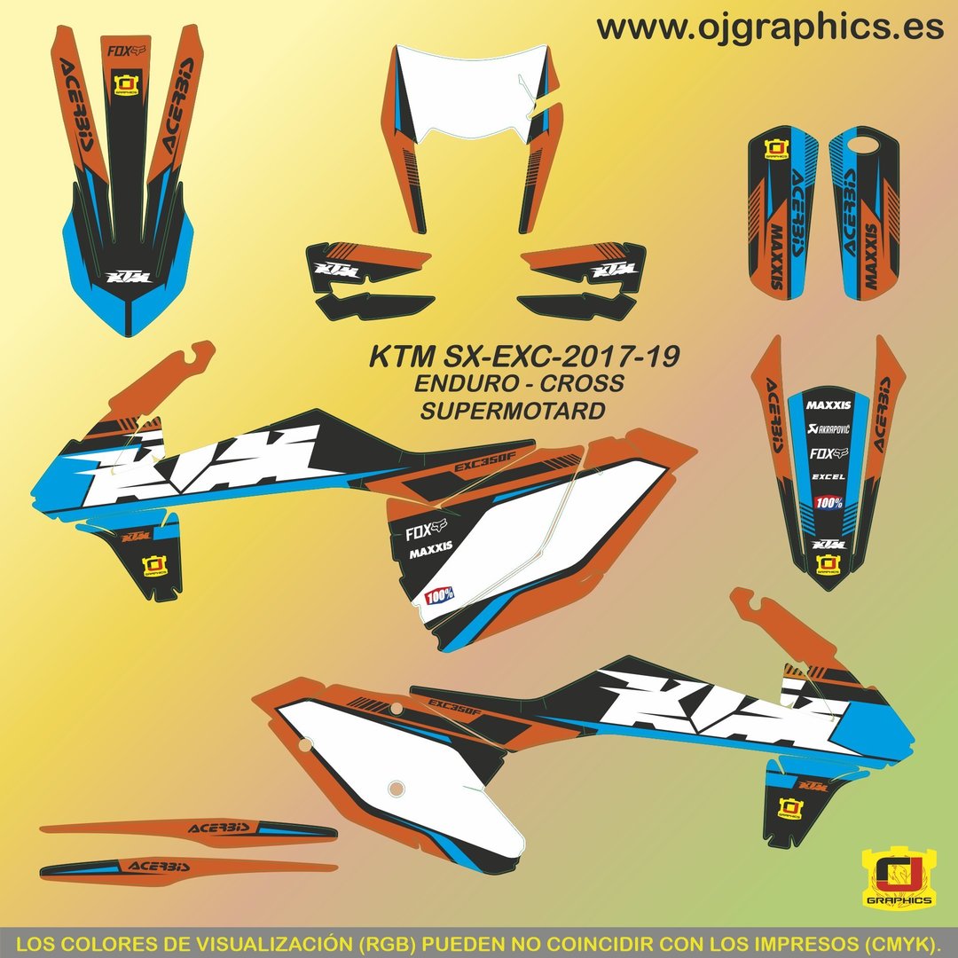 Kit Adhesivos enduro K T M E X C 2017-19 Naranja Negro Cian